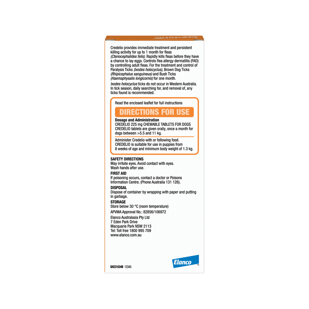 איך Credelio עובד? Credelio מכיל לוטילנר (Lotilaner), חומר אנטי-טפילי המשבש את מעבר יוני הכלוריד בממברנות התאים של פרעושים וקרציות. פעולה זו גורמת לפעילות עצבית-שרירית בלתי מבוקרת, שמובילה למות הטפילים. Credelio מתחיל לפעול בתוך 4 שעות, ומחסל מעל 99% מהפרעושים בתוך פחות מ-8 שעות.