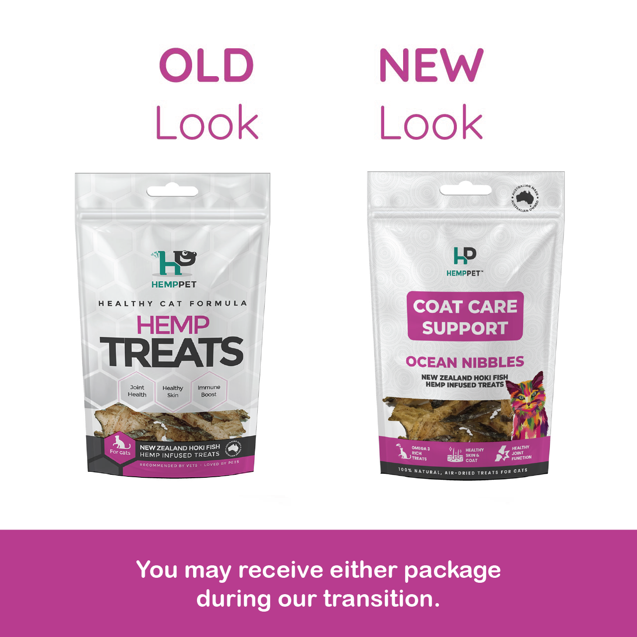 הכירו את חטיפי ההוקי הניו זילנדי בתוספת המפ של HempPet לחתולים – מיוצרים בקפידה מדג הוקי איכותי מניו זילנד ומועשרים בעוצמה התזונתית של המפ, לנשנוש טעים ובריא שהחתול שלכם יאהב.