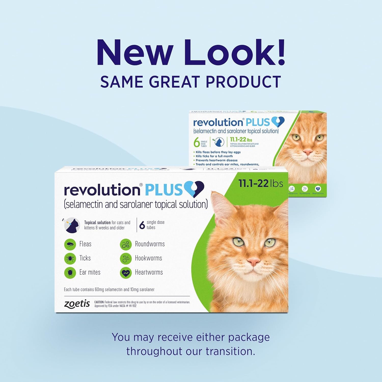 - טיפול ומניעה של פרעושים: ניתן ליישם Revolution PLUS בכל עת במהלך השנה לצורך מניעה וטיפול בפרעושים. במקרה של נגיעות קיימת, המנה הראשונה מחסלת פרעושים בוגרים ומונעת הטלת ביצים. שימו לב שנגיעות בסביבה עשויה להימשך עד שביצי פרעושים שכבר קיימות בסביבה יבקעו ויגיעו לבגרות.