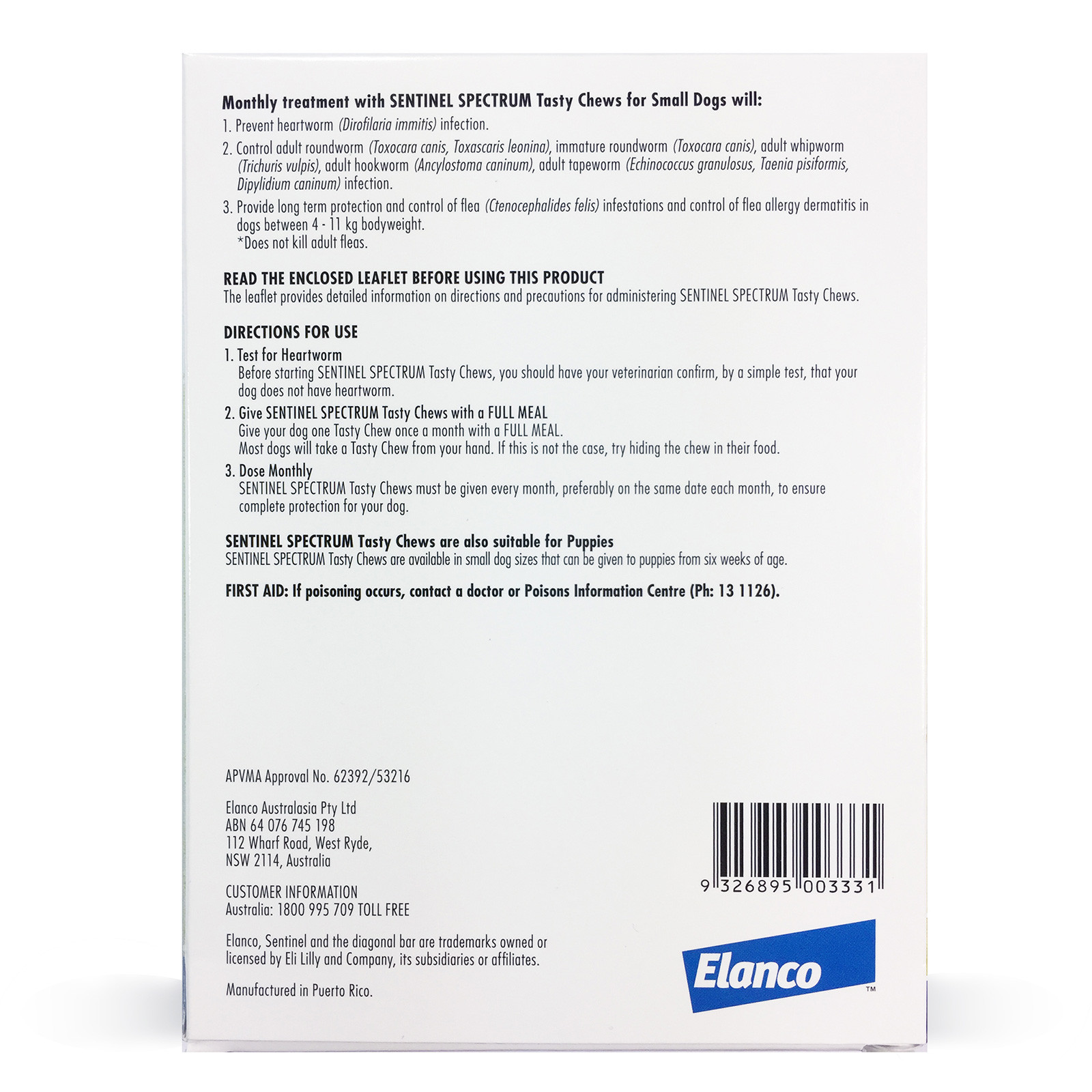 חטיף לעיסה טעים הניתן אחת לחודש למניעה ולשליטה בפרעושים, תולעת הפארק (Heartworm) ותולעי מעיים (כולל תולעי סרט) בכלבים.